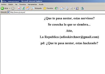 – RT @dafnu: RT: @estebanc: ups … hackearon la web del PJ http://www.pj.org.ar/ !!!!!