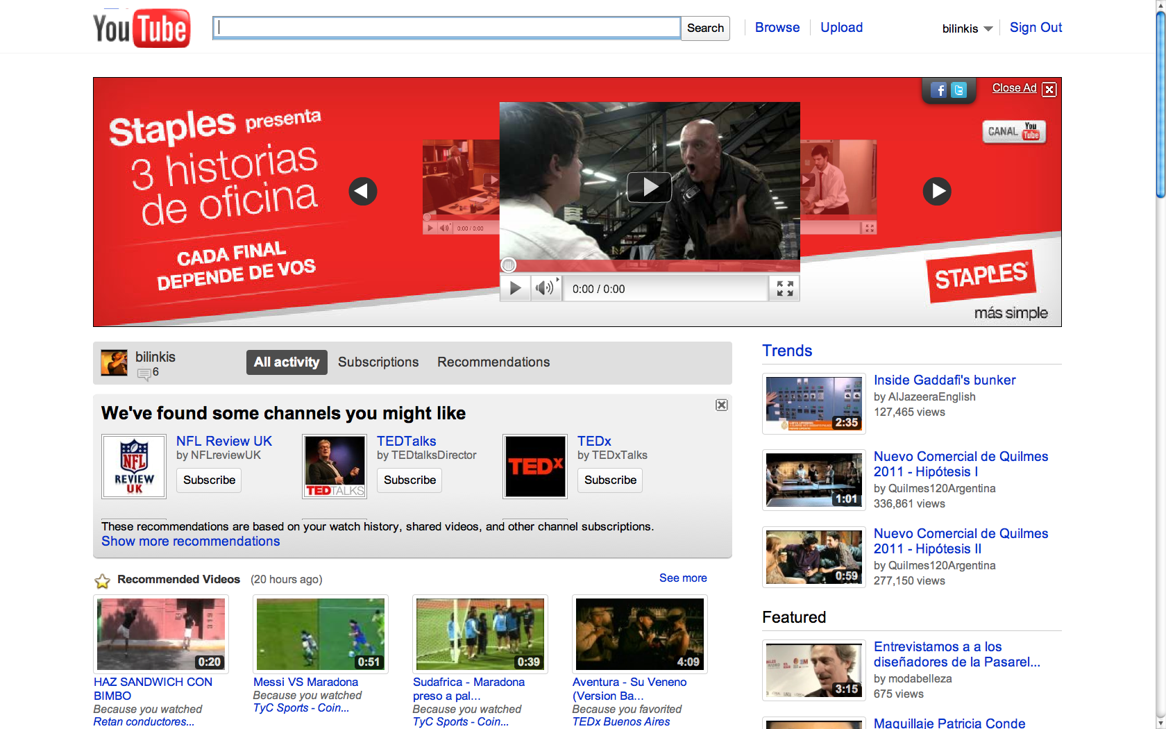 Pero lo más llamativo es que un año y medio después, esfuerzos de conversión de marca mediante, la brecha de marca entre Officenet y Staples en Argentina seguía siendo hasta enero tan grande como siempre… (Edit: aunque tener TODO el home de Youtube en Argentina como tiene Staples hoy puede cambiar eso rápido!) (Edit2: No se pierdan la campaña de hoy de Staples que está buenísima! Me hizo reir mucho! Y está toda filmada en Officen… Perdón, en Staples!)
